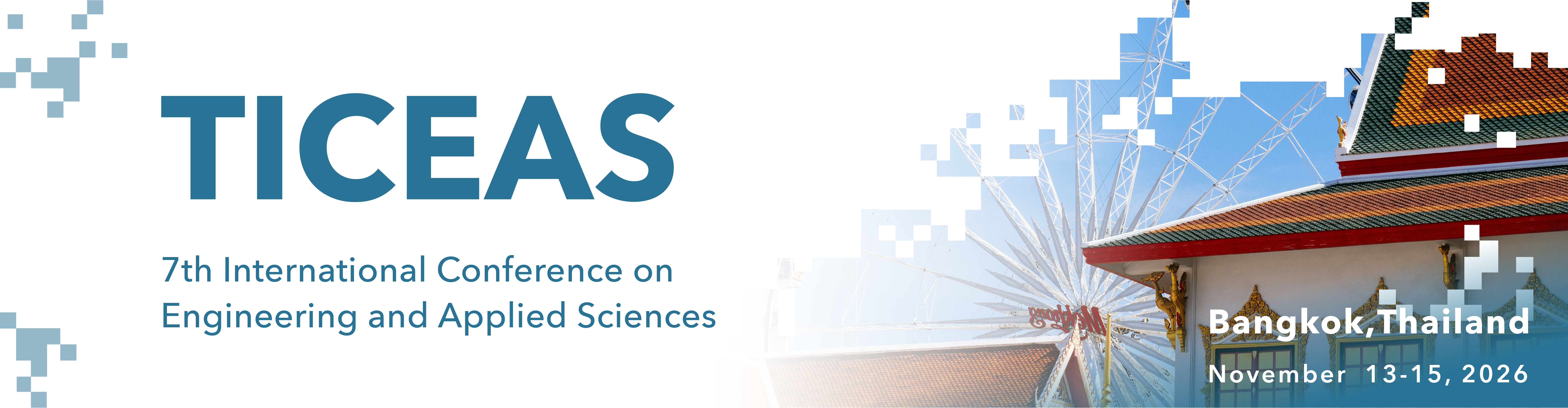 International Conference on Engineering and Applied Sciences (TICEAS) will take place from November 13-15, 2026 in Bangkok, Thailand. TICEAS is an international platform for scholars, researchers and practitioners to discuss interdisciplinary research and practices in the fields of Biomedical Engineering, Chemical Engineering, Civil Engineering, Computing Science & IT Engineering, Electrical & Electronic Engineering, Environmental Engineering, Fundamental and Applied Sciences, Material Science and Engineering, Mechanical Engineering, Industrial Engineering and all sub-fields.